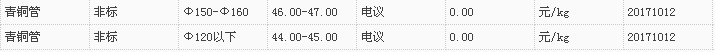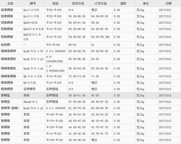 山东有色金属网2017-10-12青铜类现货报价