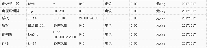 山东有色金属网2017-10-17炉料焊材类现货报价