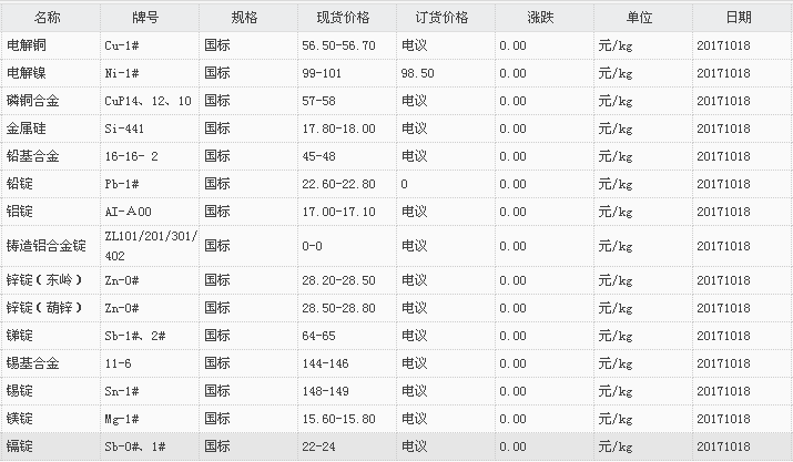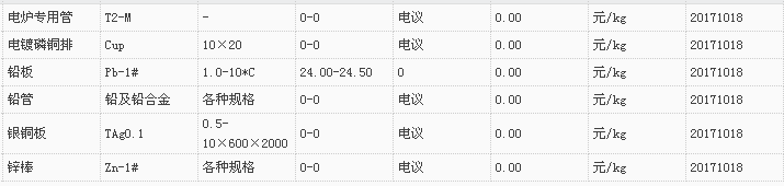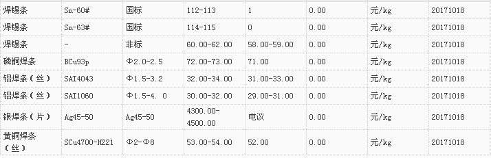 山东有色金属网2017-10-18炉料焊材类现货报价