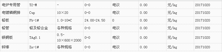 山东有色金属网2017-10-20炉料焊材类现货报价