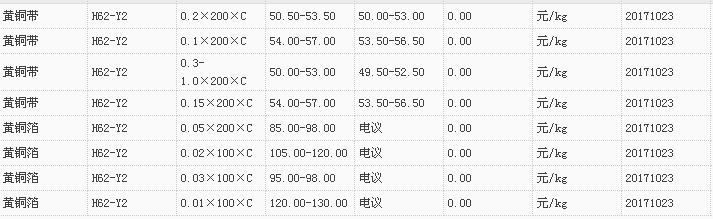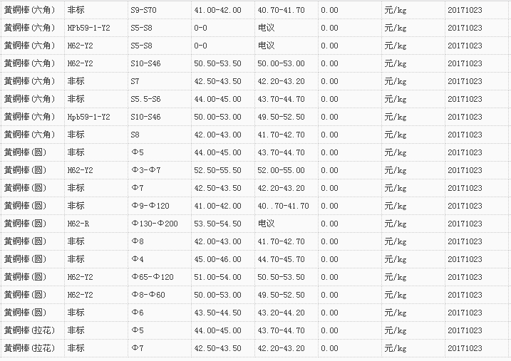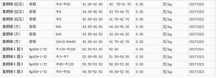 山东有色金属网2017-10-23黄铜类现货报价