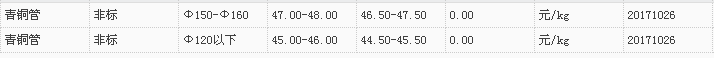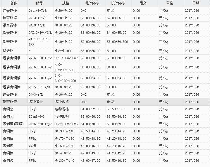 山东有色金属网2017-10-26青铜类现货报价