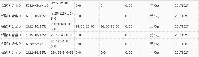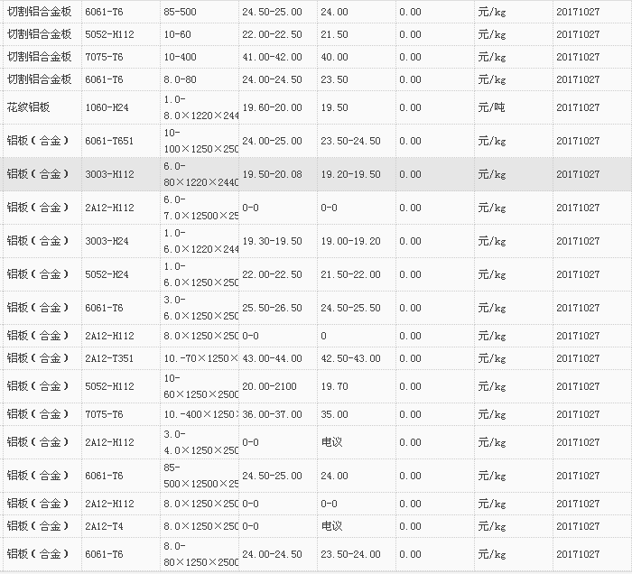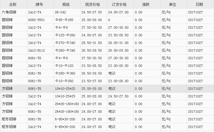 山东有色金属网2017-10-27铝材类现货报价