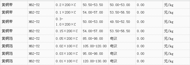 山东有色金属网2017-11-7黄铜类现货报价