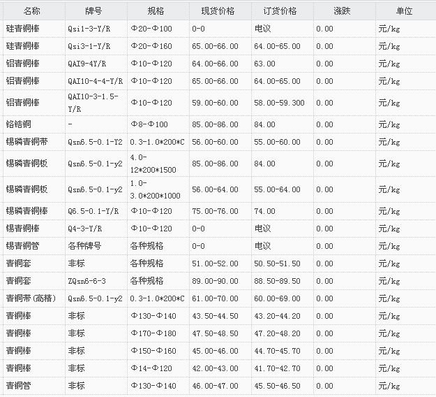 山东有色金属网2017-11-8青桐类现货报价