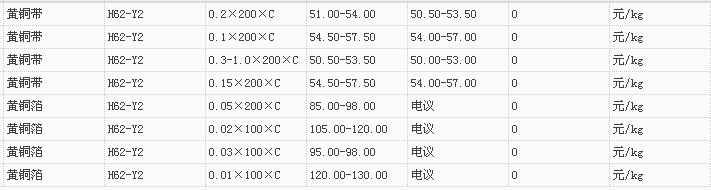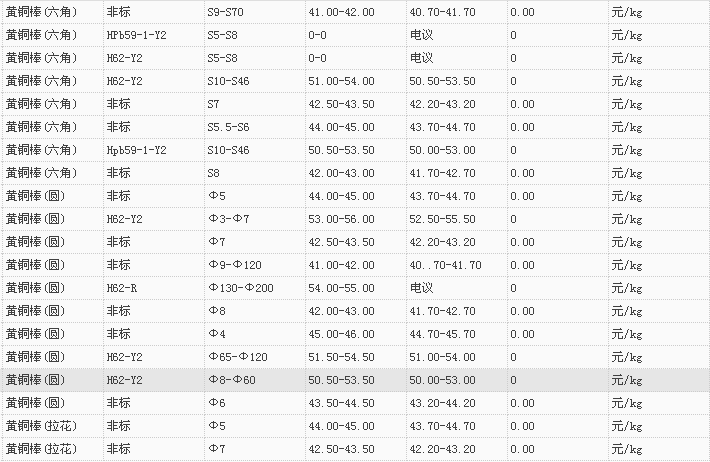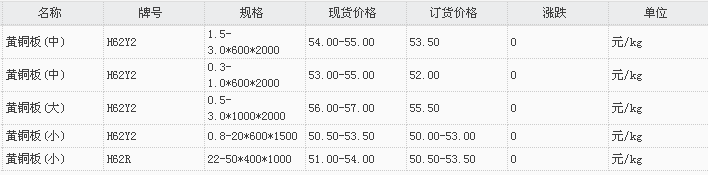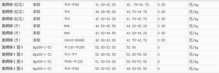 山东有色金属网2017-11-9黄铜类现货报价