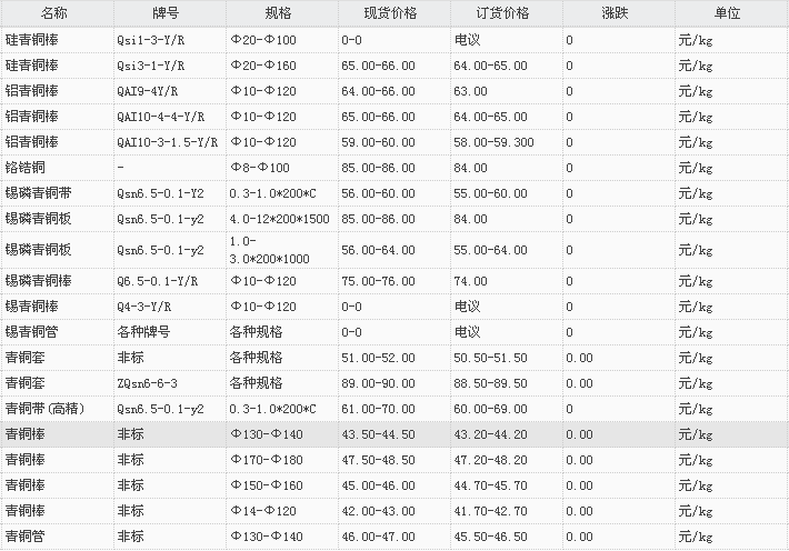 山东有色金属网2017-11-9青铜类现货报价