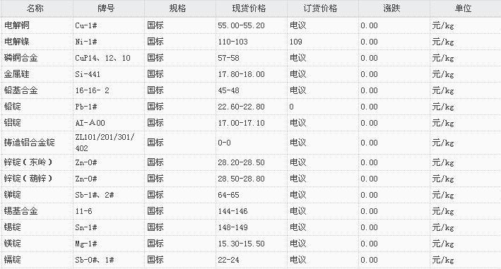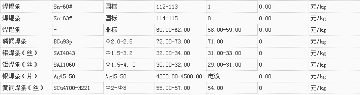 山东有色金属网2017-11-9炉料焊材类现货报价