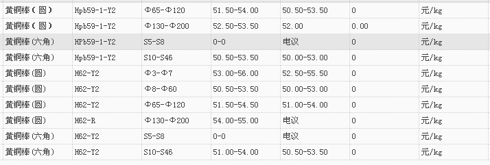 山东有色金属网2017-11-13黄铜类现货报价