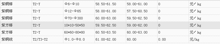 山东有色金属网2017-11-21紫铜类现货报价