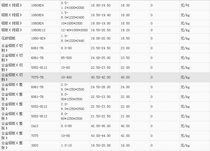 山东有色金属网2017-11-27铝材类现货报价