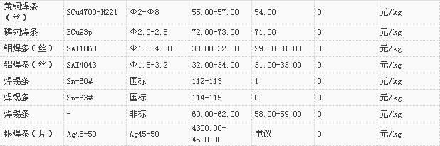 山东有色金属网2017-12-25炉料焊材类现货报价