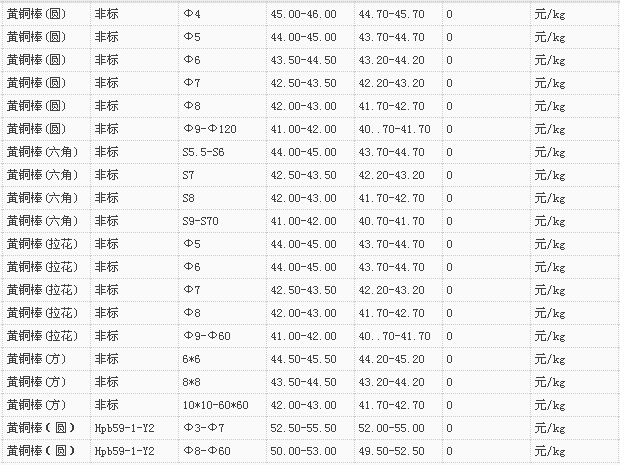 山东有色金属网2017-12-29黄铜类现货报价