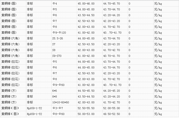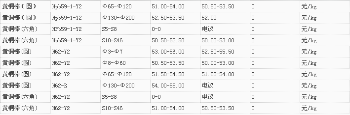 山东有色金属网2018-1-2黄铜类现货报价