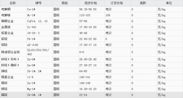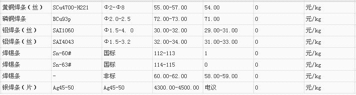 山东有色金属网2018-1-2炉料焊材类现货报价