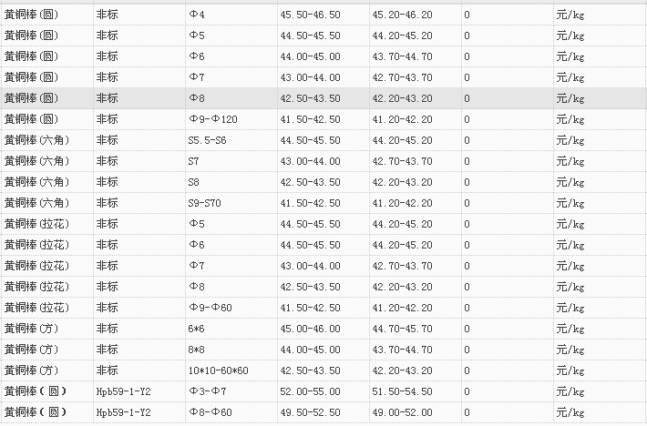 山东有色金属网2018-2-28黄铜类现货报价