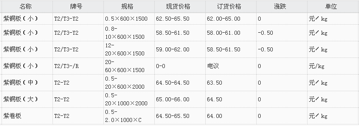 山东有色金属网2018-3-9紫铜类现货报价
