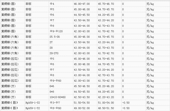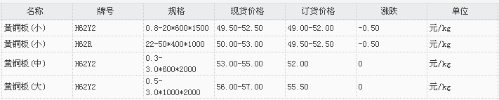 山东有色金属网2018-3-9黄铜类现货报价